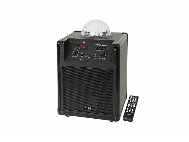 Портативная переносная акустическая система KUBE60-BK с питанием от встроенного аккумулятора или от сети питания, с усилителем и световым эффектом RGB для мобильного и караоке использования.