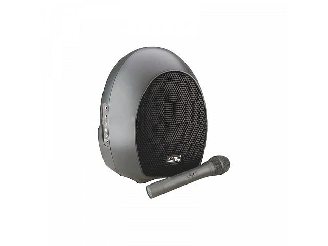 В комплект SKWH065U входит радиомикрофон (ручной и петличный), встроенный МР3 плеер (USB, SD). Внешние источники могут быть подключены через микрофонный, линейный или AUX входы. Встроенный аккумулятор позволяет использовать эту акустическую систему без привязки к розетке.
