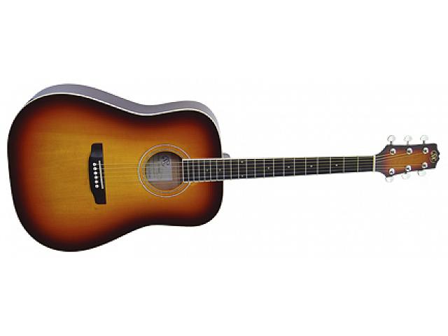 гитара акустическая, дредноут, верхняя дека - ель, гриф - нато, колки хром, цвет Tabaco Brown Sunburst