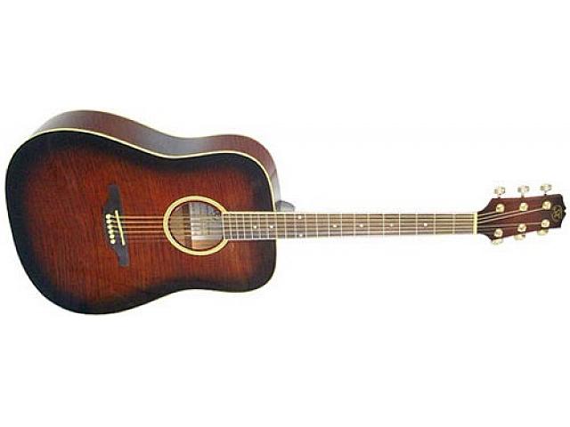 гитара акустическая, верхняя дека - тигровый клен, дека и обечайка - липа, накладка палисандр, колки Die-Cast, цвет Vintage Sunburst