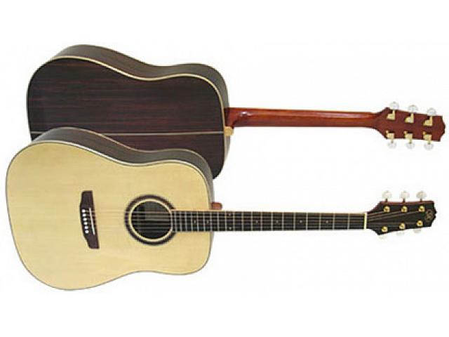 акустическая гитара, верхняя дека - цельная ель, гриф - красное дерево, колки - золотое покрытие