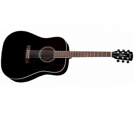 акустическая гитара, дредноут, верхняя дека из цельной ели, нижняя дека и обечайка из красного дерева, фигурная окантовка, гриф из красного дерева, цвет черный
