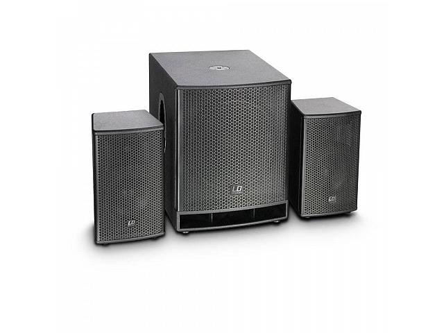 Компактная активная акустическая система с DSP. 1 х Сабвуфер 18″. 2 х Топа 10″+ 1″. Дисперсия: 75° x 75°; Усилитель: Class D. RMS: 1200W. Peak power: 4800W Частотный диапазон: 32Гц – 20кГц; Max.SPL(продолжительное): 124dB; Max. SPL (peak): 135dB; Общий вес: 63,2кг.