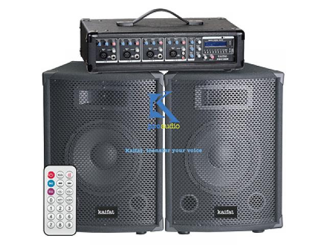 комплект звукового оборудования, 4-канальный силовой микшер + 2 колонки по 100 Ватт