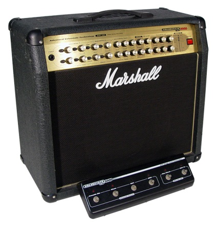 Мощность Marshall AVT 100 уже составляет 100 Ватт при динамике в 12 дюймов. Количество каналов увеличено до трех, есть процессор эффектов DFX. Кроме этого на панели появился переключатель режимов Bright (традиционный яркий звук) и Scoop (этот режим немного убавляет средних частот, что отлично подходит для ритма, но плохо сказывается на разборчивости соло).
