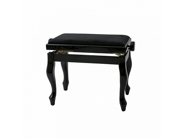GEWA Deluxe Classic Black Gloss - банкетка для клавишных инструментов, которая изготовлена из массива дерева, а сиденье имеет велюровое покрытие черного цвета. Ножки прочно соединении с сиденьем, ведь скамейка выдерживает нагрузку до двух тонн. Также, банкетка GEWA FX оборудована механизмом, регулирующим высоту сиденья от 45 см. До 58 см. Этот механизм позволит плавно и точно настроить высоту скамьи. Поэтому, изысканная банкетка GEWA Deluxe подойдет для всех пианистов.