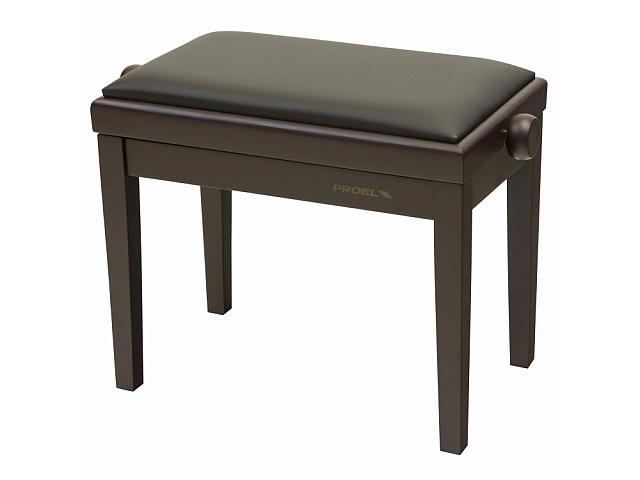 Регулируемая по высоте профессиональная деревянная скамья для фортепиано и органа. Рама из матового палисандра. Сиденье с обивкой из искусственной кожи черного цвета.
