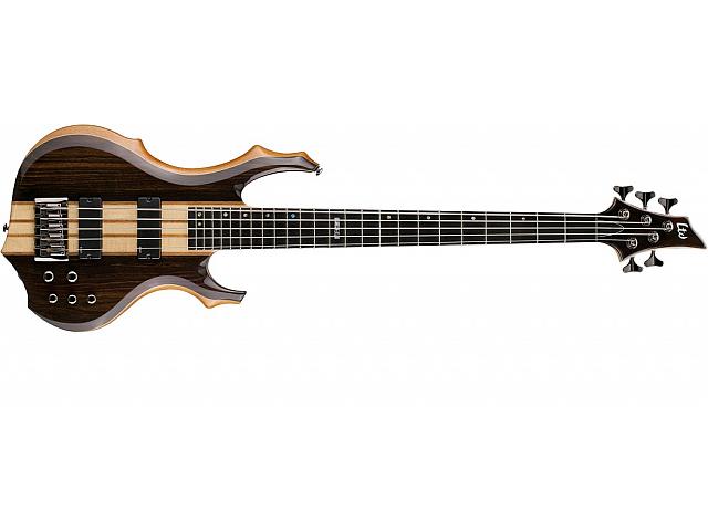 бас-гитара, 5 струн, корпус изкрасного дерева с накладкой из черного дерева, мензура 35, 24 XJ лада, звукосниматели ESP SB-5, активный 3-х полосный эквалайзер ESP ABQ-3
