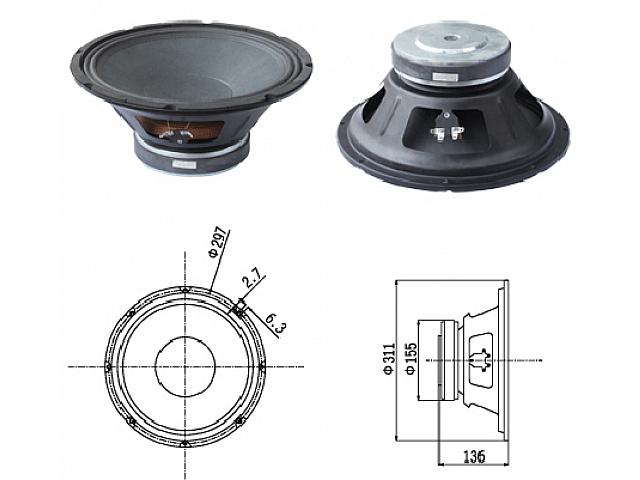 динамики для акустических систем Диаметр дюйм: 12" Эффективный рабочий диапазон частот: 0.05-4 кГц, звуковое давление 96 Дб, сопротивление2.5 Ом, мощность 150 Вт