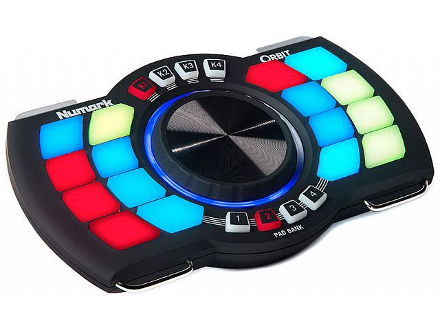 Numark Orbit - данный контроллер имеет в своем распоряжении 16 пэдов с подсветкой, алюминиевый джог, 4 варианта настроек, 16 назначаемых пэдов на каждый банк настроек. Так же в контроллере присутсвует двухосный акселлирометр с кнопками управления по бокам. Данный акселлирометр может быть назначен на 2 различных эффекта в каждом банке настроек и включатся с помощью кнопок. Dj может настроить Orbit по своему желанию, так как любой MIDI параметр воможно назначить индивидуально. Подключатся Orbit через USB разъем, через который происходит подзарядка встроенного аккумулятора. Беспроводное подключение происходит с ультро низкой задержкой на частоте 2,4 GHz.
