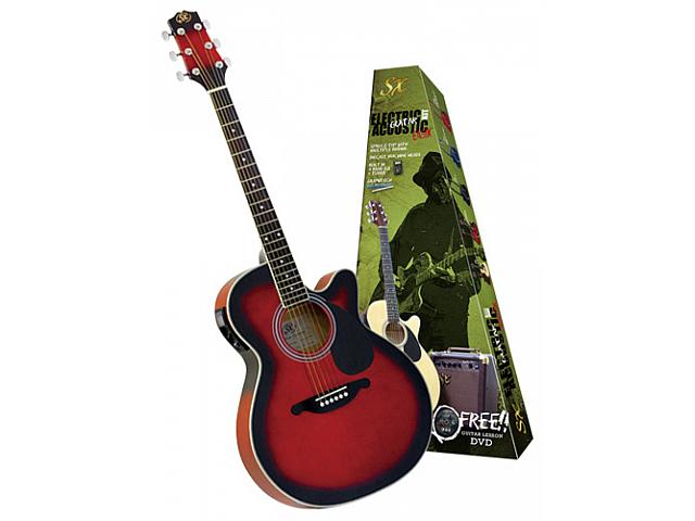 набор: электроакустическая гитара, цвет Vintage Sunburst, комбоусилитель 10 Вт, чехол, шнур, каподастр, ремень, медиаторы, DVD диск