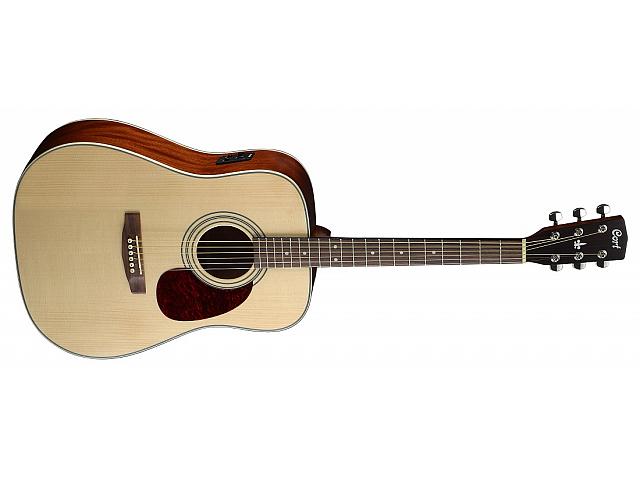 электроакустическая гитара, верхняя дека цельная ель, низ и бока красное дерево, гриф красное дерево, цвет натуральный матовый