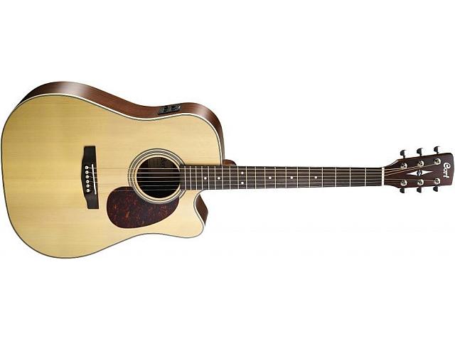акустическая гитара, дредноут, с вырезом, верхняя дека из цельной ели, нижняя дека и обечайка из красного дерева, гриф из красного дерева, окантовка корпуса, цвет натуральный