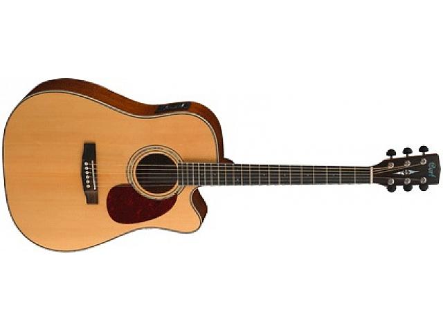 акустическая гитара с пъезодатчиком, дредноут, верхняя дека из цельной ели, нижняя дека и обечайка из дао, гриф из клена, декорированная розетка, окантовка корпуса, цвет натуральный