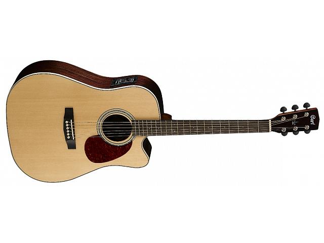 акустическая гитара с пъезодатчиком, дредноут, верхняя дека из цельной ели, нижняя дека и обечайка из палисандра, гриф из красного дерева, пъезозвукосниматель Fishman Classic 4