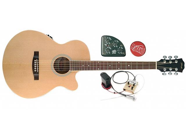 концертная электроакустическая гитара, дека: ель, низ, боковины и гриф: catalpa, накладка грифа и мостик: палисандр, вырез (cutaway), датчик: B-Band,активная электроника (4 полосы)