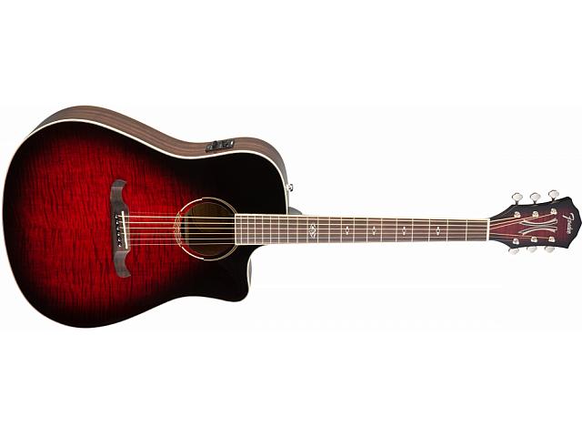 FENDER T-BUCKET 300-CE TRANS CHERRY BURST - акустическая гитара с пъезозвукоснимателем, корпус дредноут с вырезом, топ - огненный клен, Х-пружины, махагоновый низ, гриф клен, накладка палисандр, звукосниматель Fishman® Isys™ III, порожек GraphTech® NuBone™, цвет красный берст.