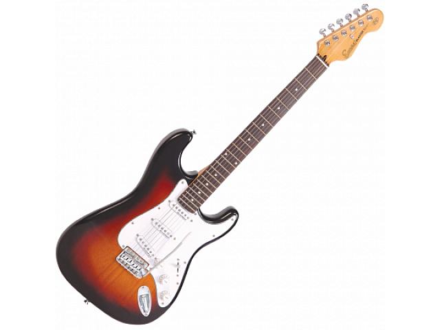Encore E6SB электрогитара типа страт, липа, гриф клен с радиусом 10 ", накладка палисандр, мензура 650 мм, тремоло на 6-ти шурупах, графитовый верхний порожок, колья винтажного типа, звук. SSS, 22 лада, 3-слойная пластиковая панель, цвет солнечный вспышка, глянец