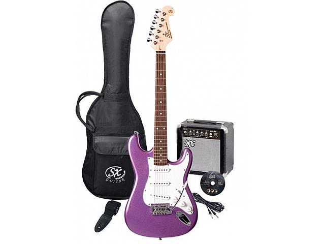 набор: электрогитара, комбоусилитель, чехол, тюнер, ремень, шнур, медиаторы