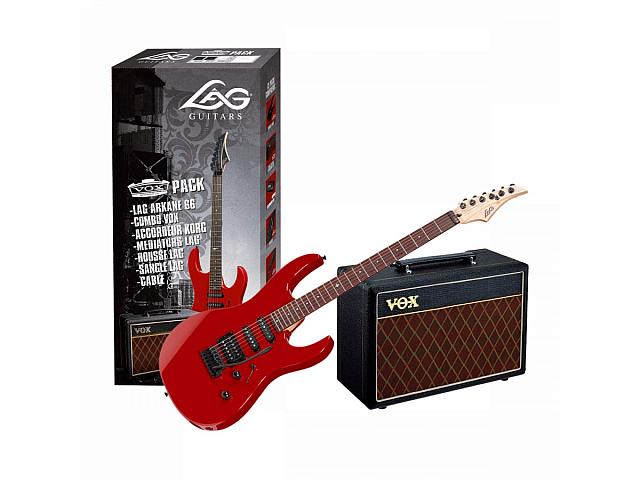 Гитарный набор Lag GLE PACKA60-DRD, который включает электрогитару Lag Arkane A66-DRD и комбоусилитель VOX Pathfinder 10.