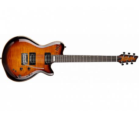 электрогитара, серия Signature, корпус - сребролистный клен с накладкой из резного клена класса АА, гриф - красное дерево, бридж классический пружинный тремоло, мензура 25 1/2″, звукосниматели - 2 хамбакера Seymour Duncan Custom, регуляторы - 5 позиционный переключатель, громкость гитары, тон, громкость синтезатора, повышение/понижение программы, 3 позиционный переключатель, предусилитель с регуляторами громкости акустического звукоснимателя, верхних, средних и низких частот, цвет Cognac Burst Flame, чехол в комплекте