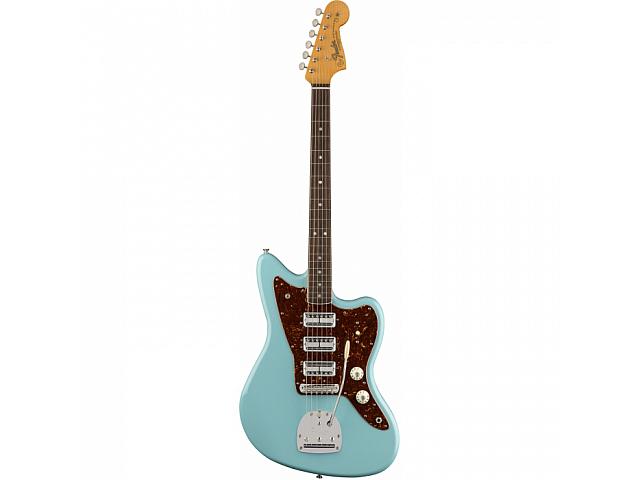 Основные особенности FENDER LIMITED EDITION 60TH ANNIVERSARY TRIPLE JAZZMASTER RW DAPHNE BLUE: Дека электрогитары изготовлена из ольхи. Гриф из клена с накладкой из палисандра. Ширина верхнего порожка грифа – 42.8 мм. Мензура - 648 мм. Количество ладов - 21. Крепление грифа к деке выполнено на болтах. Комплект звукоснимателей FilterTron (Н-Н-Н), который формирует богатый и насыщенный саунд. Бридж - Jazzmaster/Jaguar bridge, Vintage-style Floating tremolo. Цвет гитары - голубой. Кейс в комплекте. FENDER LIMITED EDITION 60TH ANNIVERSARY TRIPLE JAZZMASTER RW DAPHNE BLUE - это 6-струнная электрогитара которая имеет качественную электронику и фурнитуру, тщательную отделку всех компонентов, которая выполняется мастерами высокой квалификации. Электрогитара обладает ярким внешним видом и совершенно потрясающим звучанием и станет хорошим приобретением для гитаристов, которые ищут не только премиальный звук, но и уникальный стиль для сцены.