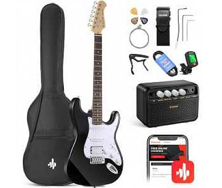 В комплект входит электрогитара Donner DST-1B, усилитель MINI мощностью 3 Вт, качественный чехол для концерта, каподастр для гитары, тюнер DT-2, струны, ремень и медиаторы. DST-1B имеет крепкий корпус из липы с тонкими арками, хромированные клавиши тюнера, высококачественные латунные струны и защитную накладку из ПВХ.