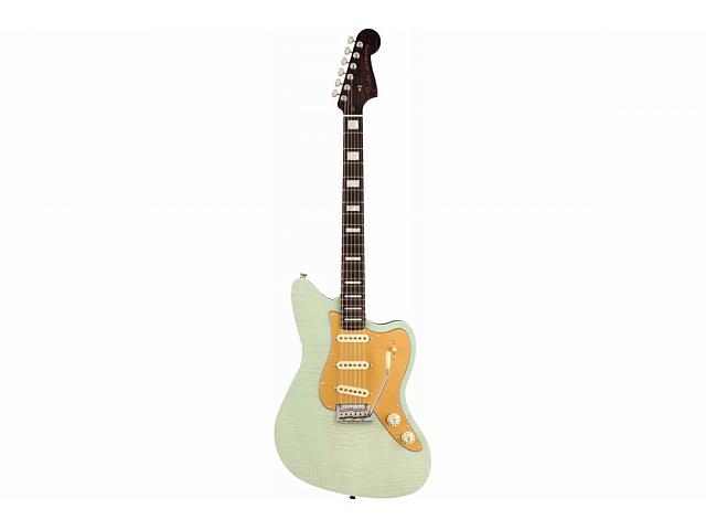 Восхитительный бледно-зеленый цвет, топ из фигурного огненного клена деки формы Jazzmaster — это смелый и красивый поворот в классическом дизайне, напоминающий высококлассные джазовые гитары и обеспечивающий солидное звучание и резонанс. Дополненная гладкой-как-шелк накладкой из цельного палисандра с радиусом 9.5" и 22 узкими высокими (Narrow Tall) ладами, эта гитара словно мечта с соответствующим внешним видом.