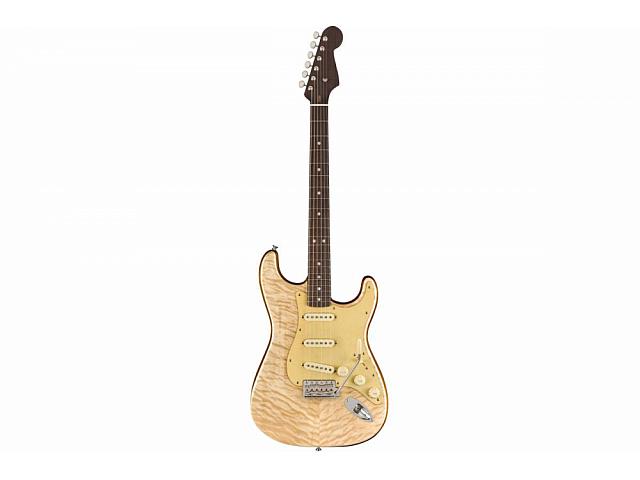 FENDER RARITIES QUILT MAPLE TOP STRATOCASTER обладает декой из двухслойной «запеченной» ольхи с кленовым топом, а также грифом из цельного палисандра. Звукосниматели Pure Vintage '65 Gray-Bottom Single-Coil Strat обеспечивают приятный, артикулированный звук.