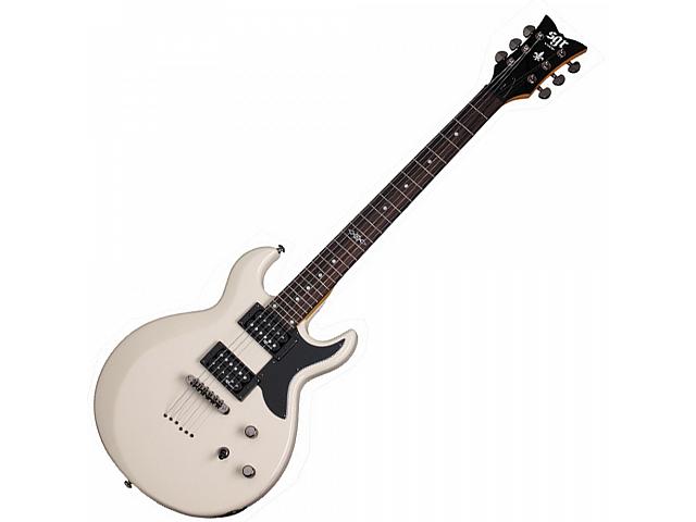 Электро гитара. Корпус: липа, гриф: клен, накладка грифа: палисандровая, крепление грифа: на болтах, бридж: Schecter Tune-O-Matic, звукосниматели: 2 хамбакера SGR by Schecter Diamond Plus, регуляторы: 3 позиционный переключатель, громкость, тон, цвет фурнитуры: черный хромированный, в комплекте: чехол SCHECTER, цвет: WHT (Белый)