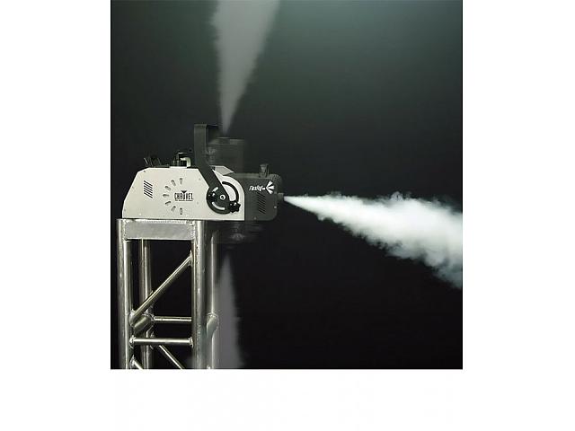 Новая дым-машина FlexFog 1500 компании Chauvet имеет мощность 1,5 кВт, производительность 25000 см3, регулировку угла выброса тумана до 180 градусов. Беспроводное дистанционное управление с таймером (входит в комплект поставки), на корпусе имеется кнопка ручного запуска.