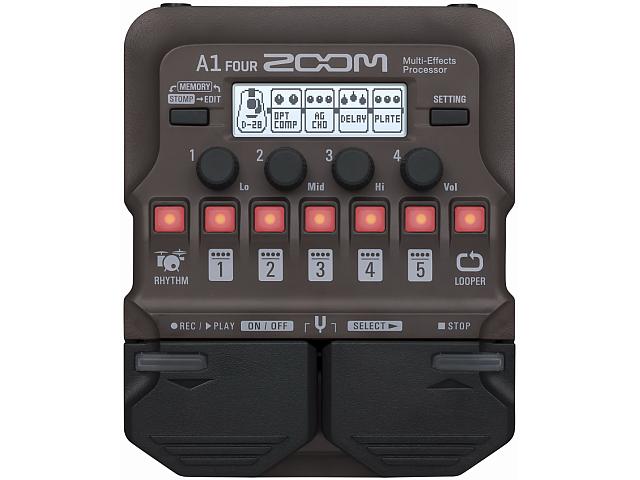 Zoom A1 FOUR - Процессор для акустических и духовых инструментов, 44.1 kHz/32 bit, 80+ эффектов, до 5 эффектов одновременно, 50 ячеек памяти, лупер до 30 сек, драм машина, USB, AUX In, питание от БП, батареек или USB, предусилитель для микрофона в комплекте.