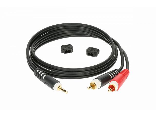 Кабель коммутационный инсертный, длина 3 м, стерео мини-джек 3.5 мм - 2xRCA, кабель PCU201-Z, диаметр 3.8 мм х 7.6 мм, позолоченные контакты, цвет черный.