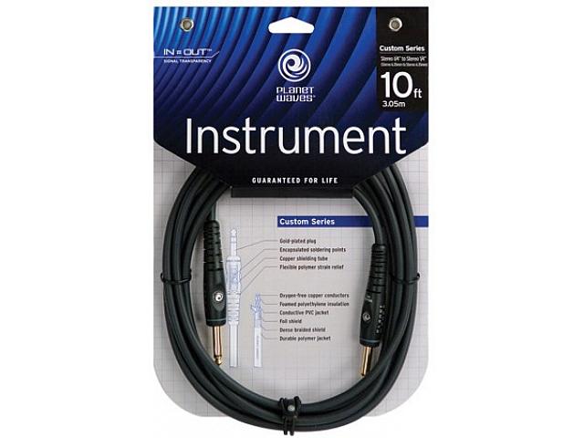 Инструментальный кабель Custom Series При изготовлении инструментального кабеля Planet Waves серии Custom применяются многожильные проводники из бескислородной меди, для достижения максимально качественной передачи сигнала и гибкости. Герметизированные литые разъемы и непроницаемые точки пайки обеспечивают прочность и надежность. Два слоя экранирования обеспечивает 100% покрытие для превосходной изоляции и подавления шумов.