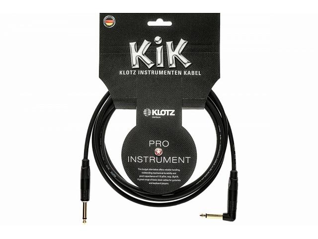 Кабель ИНСТРУМЕНТАЛЬНЫЙ, Серии KIK, длина 3 м, категория о, коннекторы джек 6.35 прямой - джек 6.35 угловой, позолоченные контакты, цвет черный.