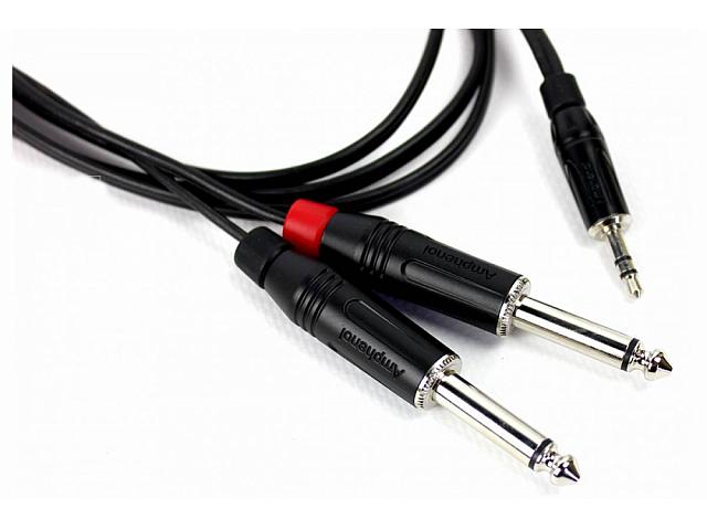 Кабельный адаптер 3.5 мм стерео-джек - два 6.3 мм моно-джека, черный, длина 2 м.
