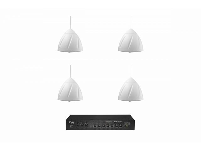 Комплект предназначен для фонового озвучивания офисов, кафе, баров, ресторанов, спортивных залов, гостиничных комплексов и рассчитан на площадь помещения до 80м².