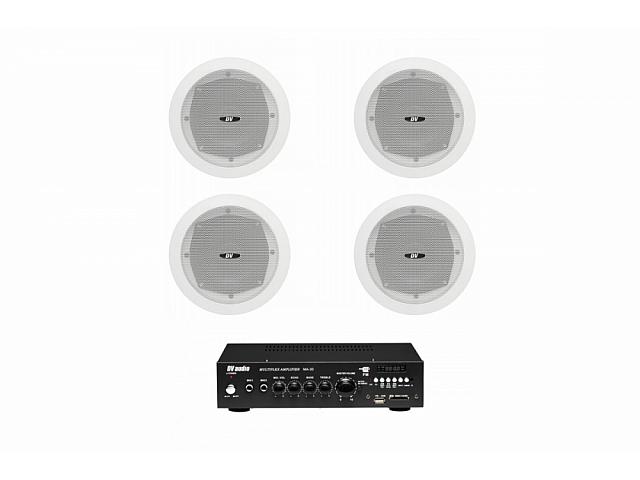 Комплект предназначен для фонового озвучивания офисов, кафе, баров, ресторанов, спортивных залов, гостиничных комплексов и рассчитан на площадь помещения до 80м².