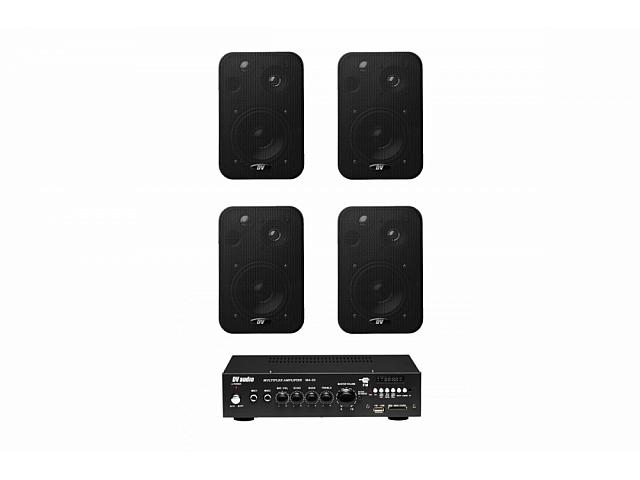 Комплект предназначен для фонового озвучивания офисов, кафе, баров, ресторанов, спортивных залов, гостиничных комплексов и рассчитан на площадь помещения до 80м².