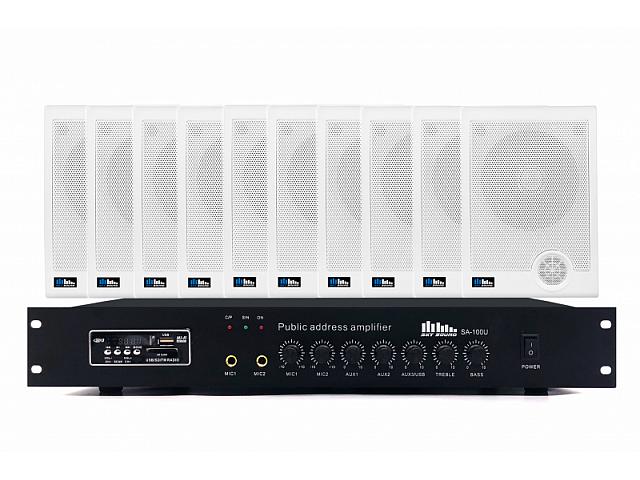 Помимо двух микрофонных и двух универсальных входов, усилитель SA-100U содержит встроенный проигрыватель FM-тюнер/USB/SD-карт/ Bluetooth , что особенно удобно для организации систем фонового озвучивания и рекламной трансляции для небольших магазинов, баров или кафе.