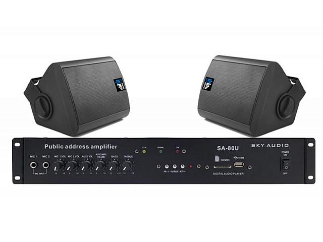 Трансляционный усилитель Sky Sound SA-80U мощностью 80 Вт, предназначен для создания небольших систем трансляции и озвучивания с суммарной мощностью подключаемой акустики не более 80-ти Ватт. Это могут быть небольшие торговые предприятия, кафе и рестораны, офисы, АЗС спортивные площадки и проч.