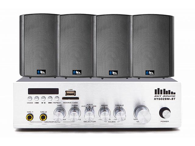 Акустический комплект SKY SOUND WSY-3004 состоит из 4-х настенных колонок Sky Sound NS-30 (белые / черные) и одного усилителя мощности Sky Sound HY-602MB+BT. Комплект системы озвучивания предназначен для небольших помещений, кафе, салонов красоты или офисов и т.д. (до 60 кв.м.).