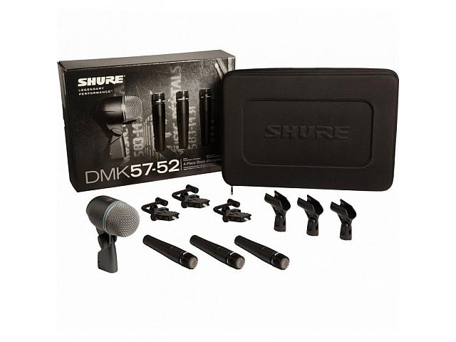 SHURE DMK57-52 - это базовый комплект микрофонов для барабанной установки, в комплекте микрофоны Shure SM57 (3), Shure BETA52A (1), поставляется с аксессуарами в кейсе. Комплект состоит из 4 микрофонов, которые поставляются с креплениями и держателями в прочном кейсе. Кроме того, микрофоны входящие в комплект могут быть применены для озвучивания или записи перкуссий, гитарных и бас-гитарных кабинетов, а так же духовых инструментов.