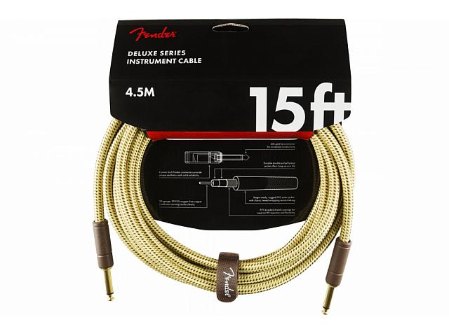 • Fender CABLE DELUXE SERIES 15' ANGLED TWEED
