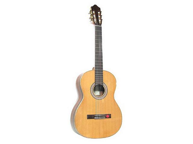 4/4, сплошная верхняя дека - красный кедр, ламинированная нижняя - красное дерево.