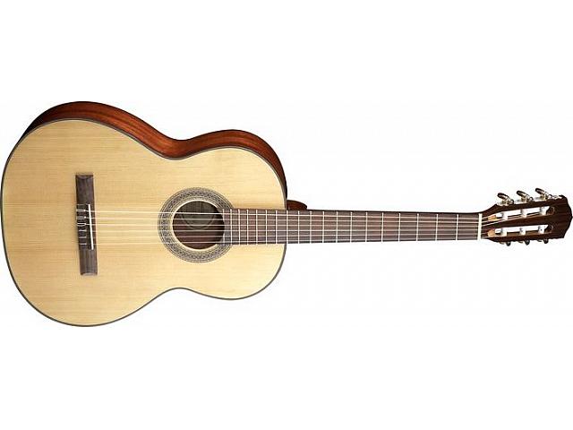 акустическая гитара с нейлоновыми струнами, верхняя дека - ель, обечайка и задняя дека - красное дерево, цвет натуральный