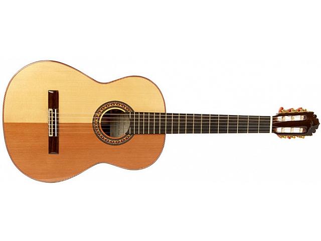 классическая гитара, верхняя дека ель/кедр, нижняя дека и обечайка индийский палисандр, гриф красное дерево