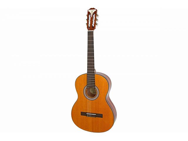Классическая "испанская" акустическая гитара, размер 3/4, верхняя дека - кедр, боковая и задняя дека - махогон, гриф - махогон, цвет - натуральный.