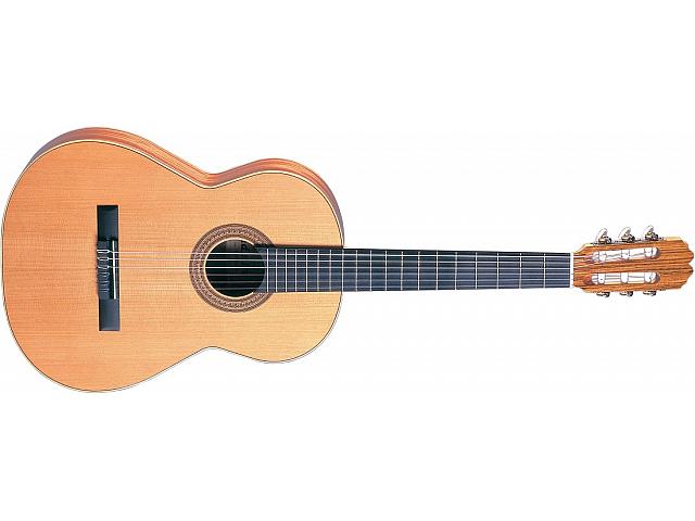 испанская классическая гитара, верхняя дека – цельный кедр, низ и бока – сапелли, гриф – красное дерево, цвет - натуральный