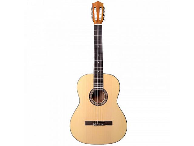 Alfabeto Spruce44 – это отличная классическая гитара как для начинающих, так и для опытных игроков. Новичкам понравится ощущение и легкость в обращении с ней, а опытные игроки оценят ее тон и звуковой баланс. Данная модель имеет ламинированный еловый топ, а нижняя дека и обечайки выполнены из сапеле. Ель – очень популярный вариант древесины для большинства гитар, она отлично подходит для игроков практически всех стилей игры. Если Вы любитель громкого и прямого звучания, то еловый топ – это подходящий вариант. Гриф изготовлен из окуме и имеет 19 ладов с инкрустацией, а накладка на гриф выполнена из палисандра. Эта гитара – действительно непревзойденное соотношение цены и качества, и на нее стоит обратить внимание.
